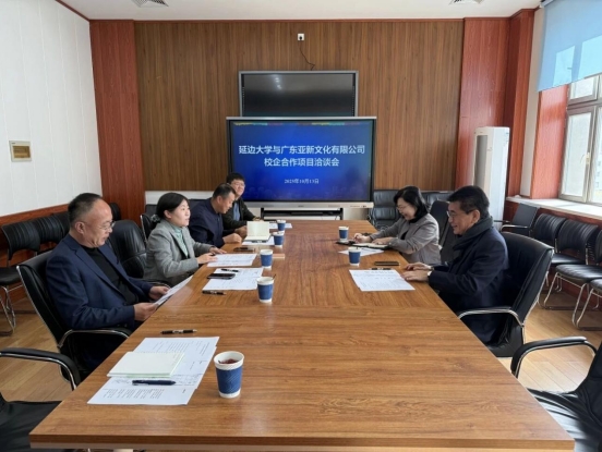 10月13日上午,延邊大學外國語學院與廣東亞新文化有限公司在融合樓404會議室舉行了校企合作洽談會。廣東亞新文化有限公司法人樸文哲、項目總監(jiān)崔蓉花,延邊大學教育培訓管理中心主任崔振宇、外國語學院黨委書記徐炳煊、外國語學院院長樸銀姬、外國語學院副院長劉一參加了會議,會議由外國語學院院長樸銀姬主持。
