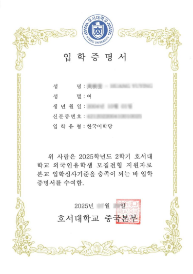 首先,同學(xué)們所有提交的資料審核通過后,將收到湖西大學(xué)發(fā)送的“錄取通知書”和“入學(xué)通知書”。(請參考圖一、圖二)