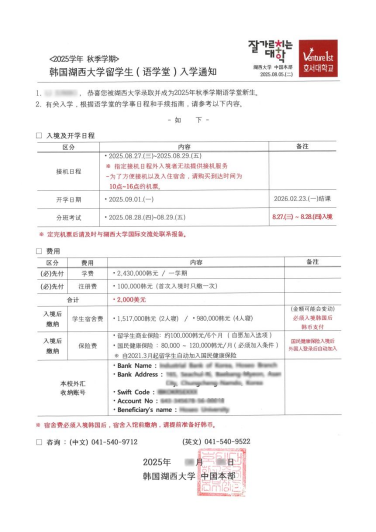 然后,在同學(xué)們按入學(xué)通知書繳費(fèi)、且校方確認(rèn)繳費(fèi)信息無誤后,學(xué)校將給學(xué)生發(fā)送湖西大學(xué)-國際教育院“韓國語教育中心運(yùn)營企劃”